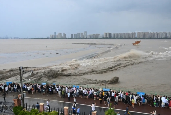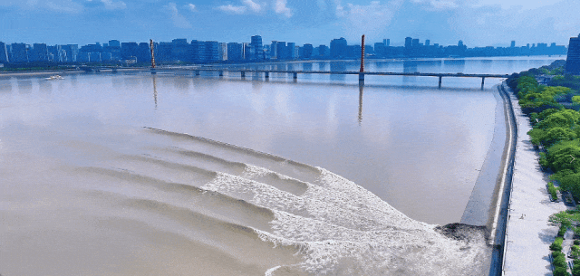 최근에 연출된 첸탕장(錢塘江) 어귀의 조수는 많은 관광객을 끌어들여 관상하게 한다.