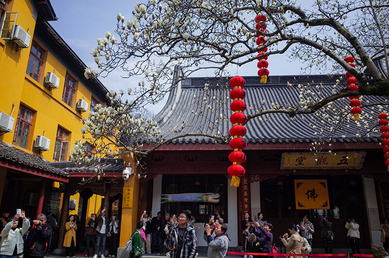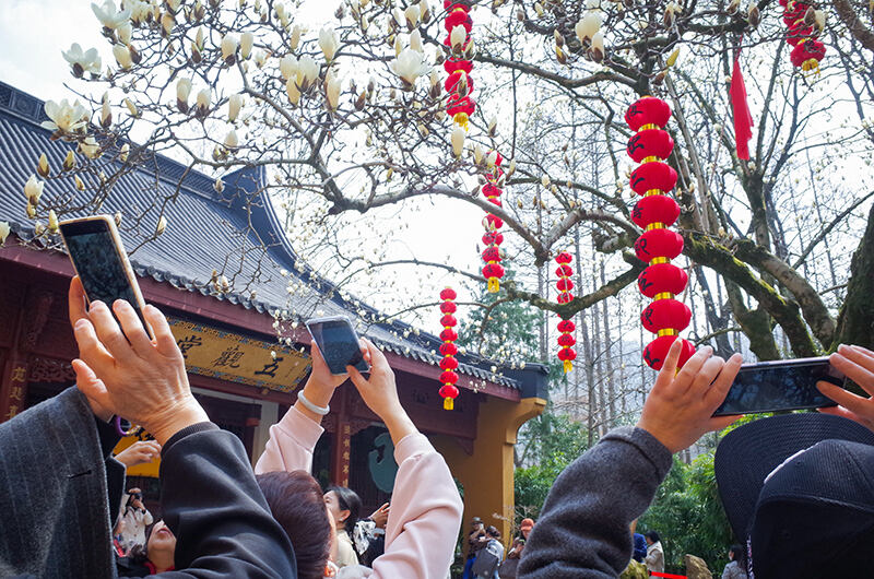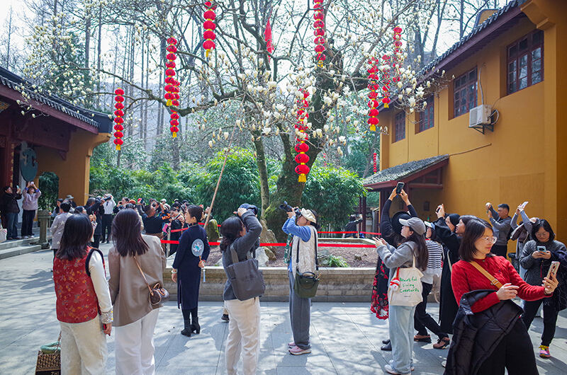 항저우 법희사, 500년 된 목련 고목에 꽃이 피었다