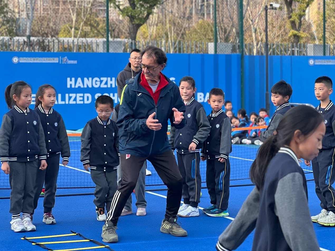 마드리드 테니스연합회 회장과 저장 테니스협회 회장 등 중외 귀빈들이 19일 항저우시 마이위차오(賣魚橋)초등학교에 모여 캠퍼스 스포츠 문화 발전에 대해 함께 논의했다.