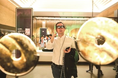 포럼에 참석한 귀빈이 량주 박물관에서 Rokid AR 안경을 체험하고 있는 모습