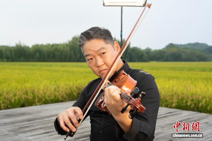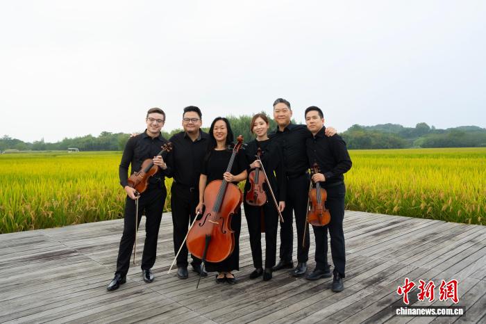 제 3 회 량주(良渚)포럼에 참가하러 온 미국 필라델피아 오케스트라는 14일 량주 유적지 공원에서 중국 명곡인 ‘양축(梁祝: 양산백과 축영대)’을 연주했다.