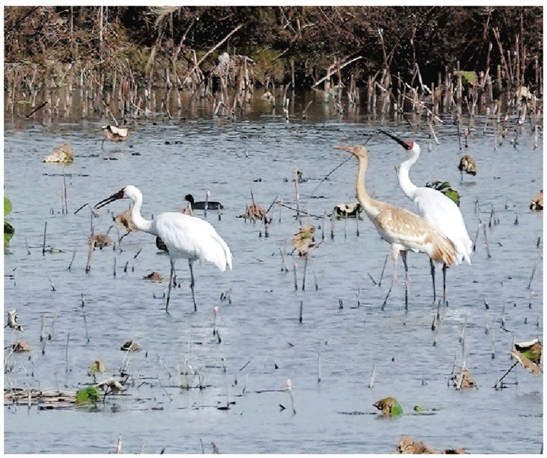 백학(白鶴)은 멸종위기종으로서 전 세계적으로 수량이 4000마리도 안된다. 난후(南湖)는 이 개체군 이동 중의 중요한 휴식지로 되었다.