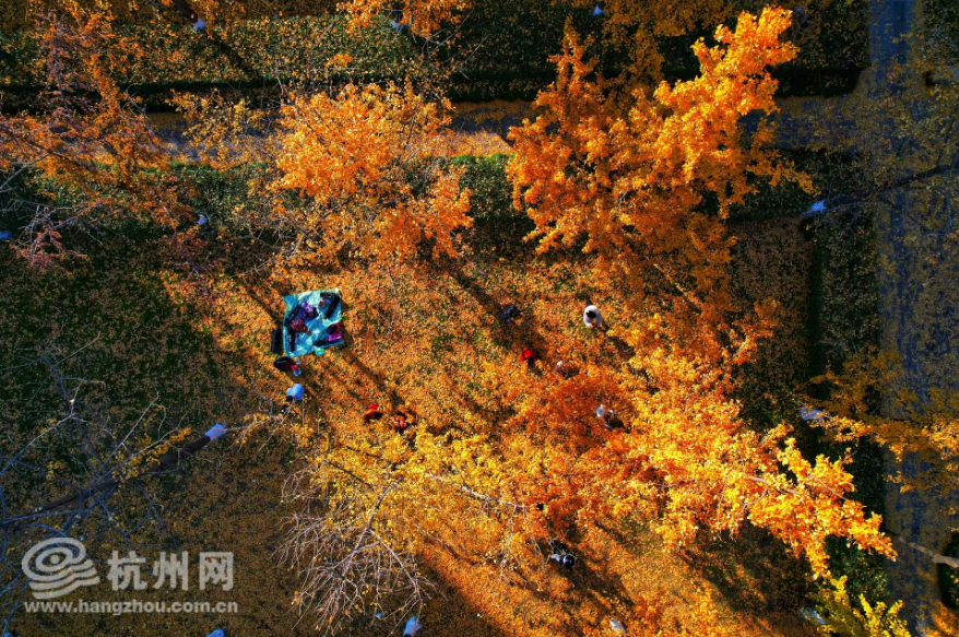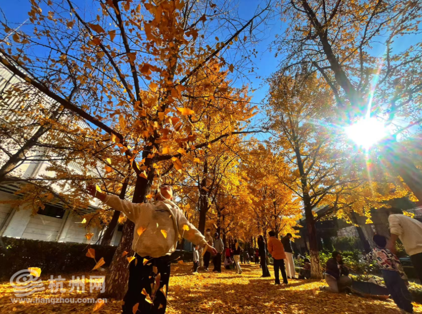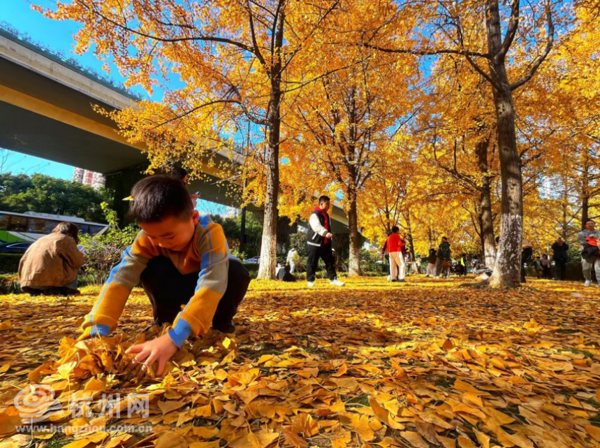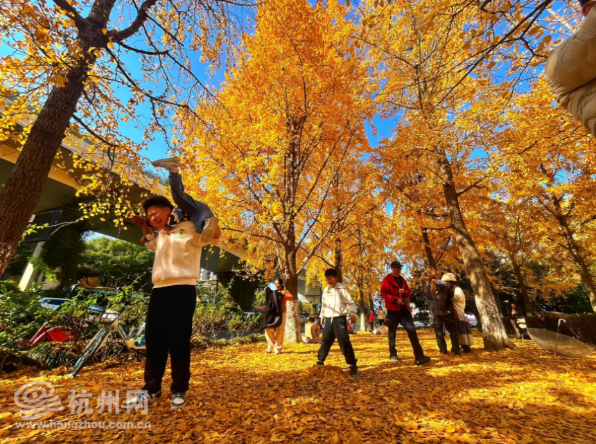 항저우 길거리에 은행나무 숲, 어린이 낙원 됨