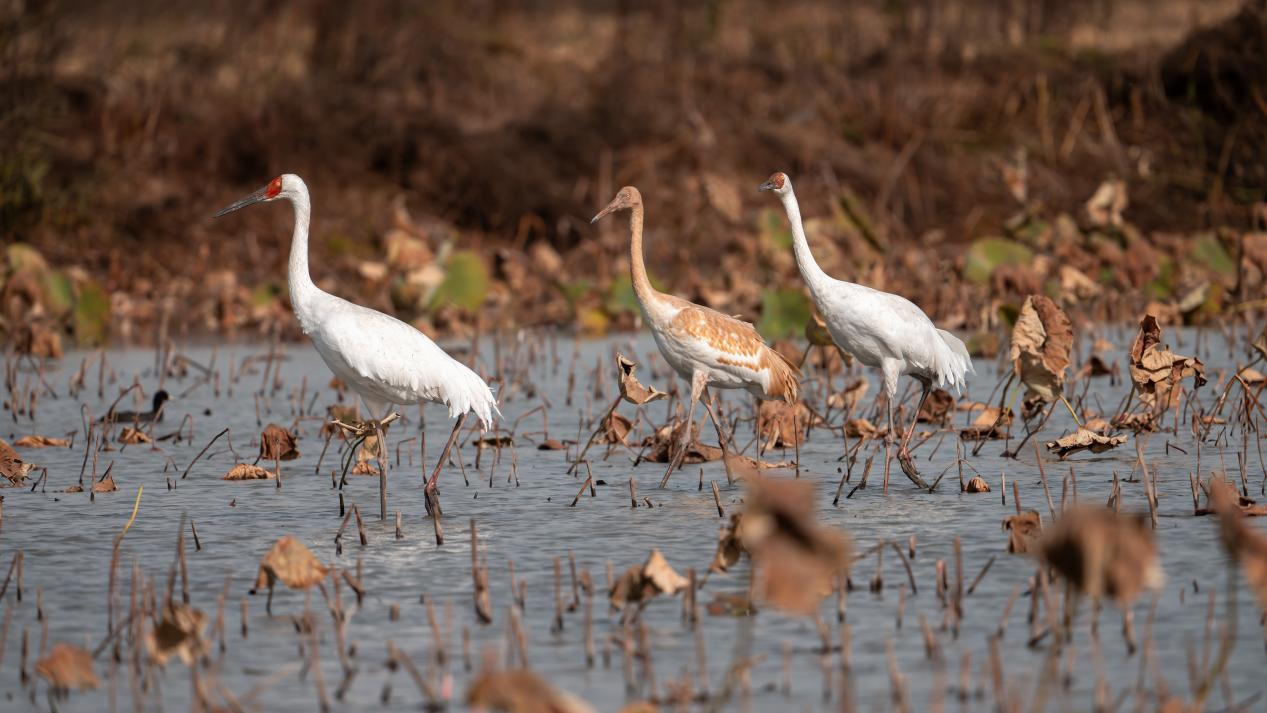 최근 글로벌 멸종위기종인 백학(白鶴)이 항저우 위항(餘杭) 난후(南湖)에서 유유히 먹이를 찾는 모습이 아름다운 생태 그림 한 폭을 이뤘다.